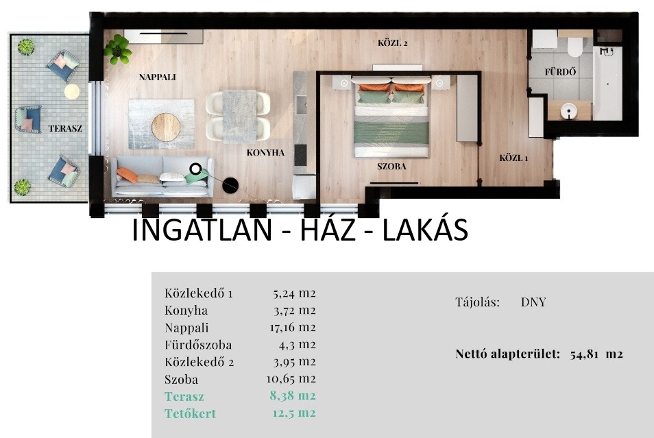 605 lakás Terasz: 8.5 nm tetőert: 12.5 nm