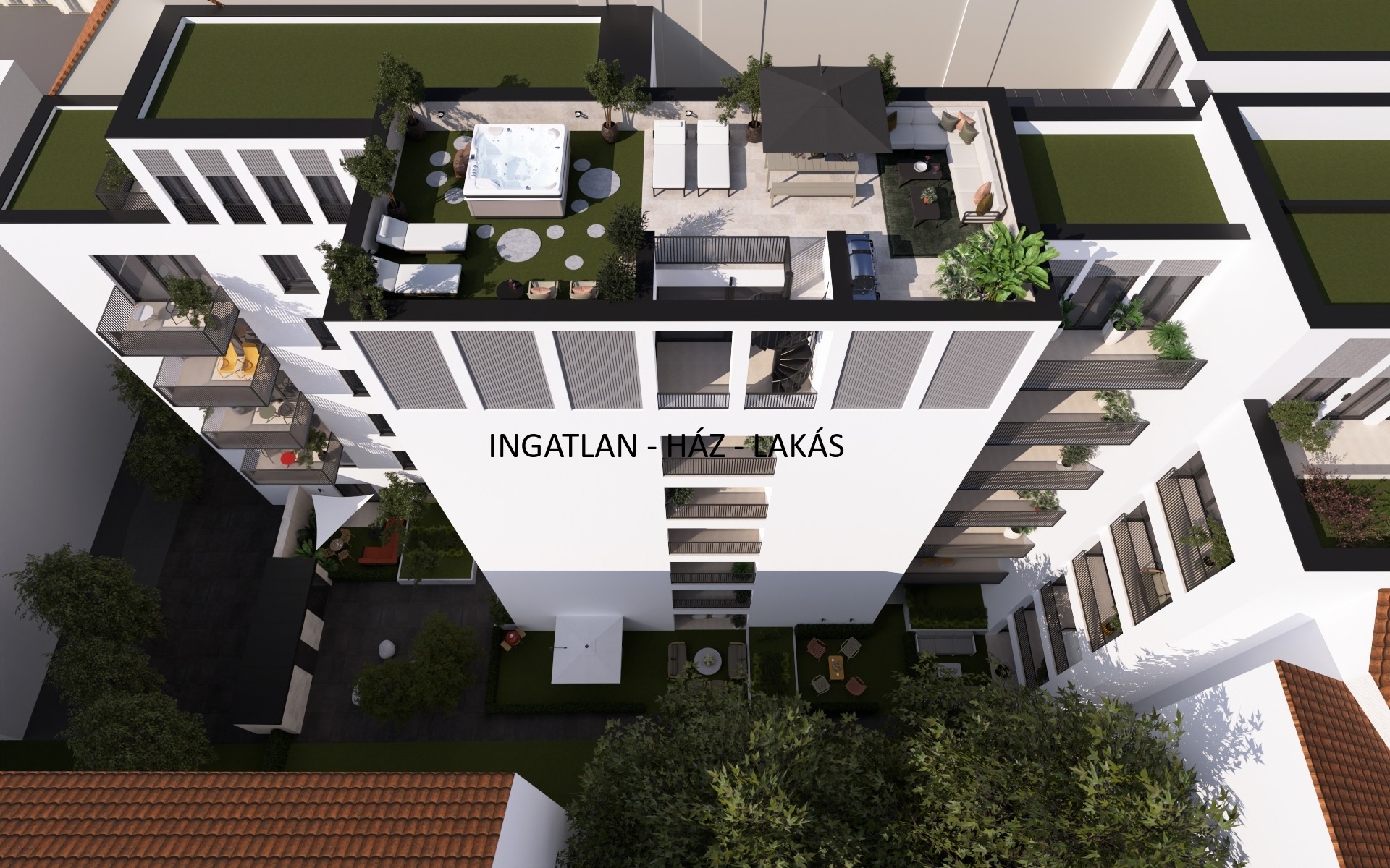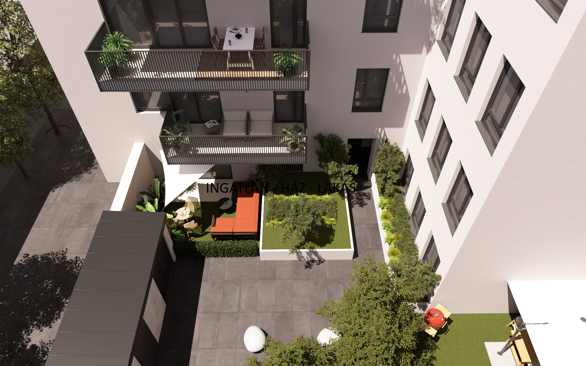 A gondozott, automata öntözőrendszerrel ellátott közös kert emeli a lakókörnyezet színvonalát, hozzájárulva a lakók kellemes életérzéséhez.