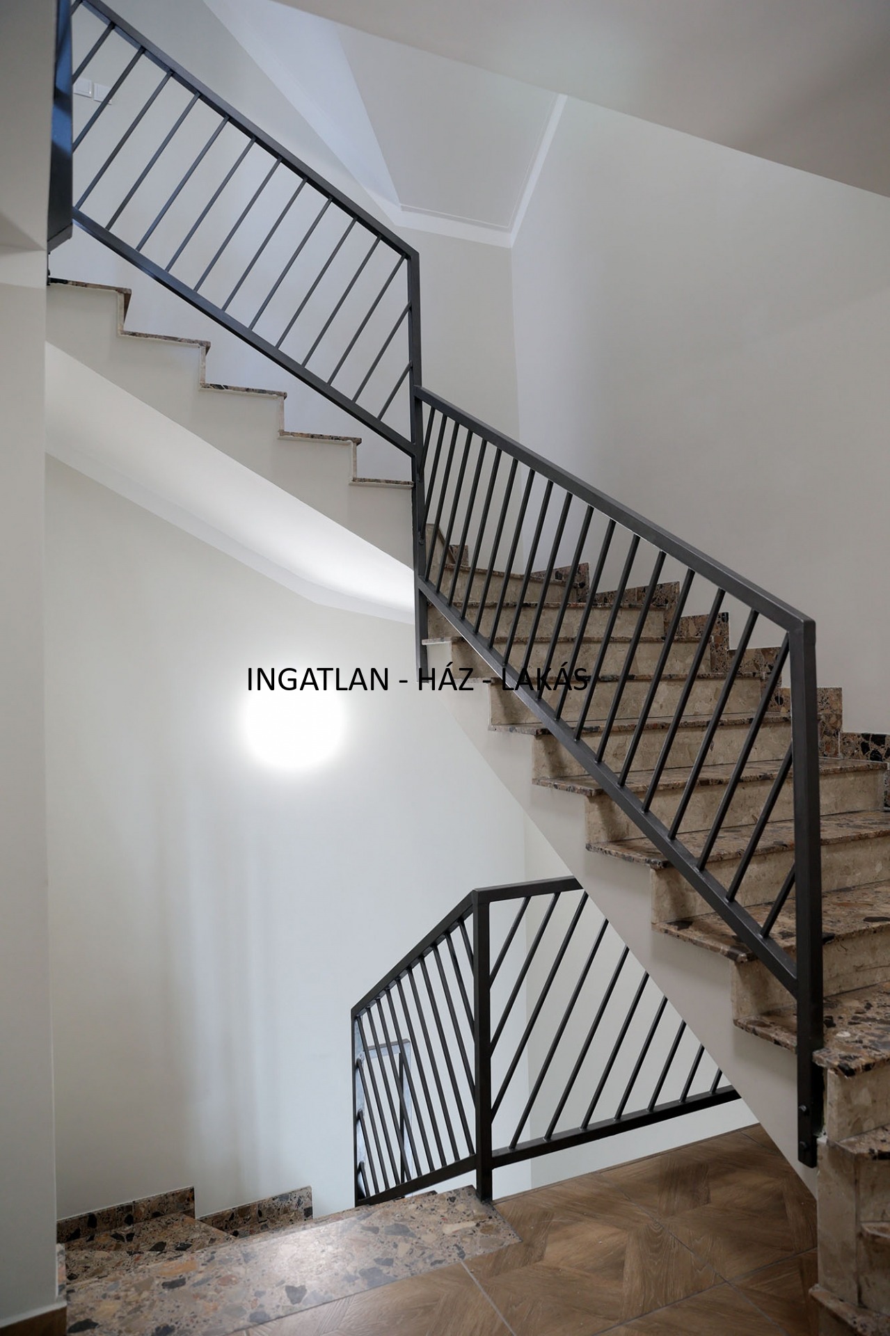 I. emelet: 130m2 (5 db szoba/iroda, teakonyha, mosdó, zuhanyzó, erkély)