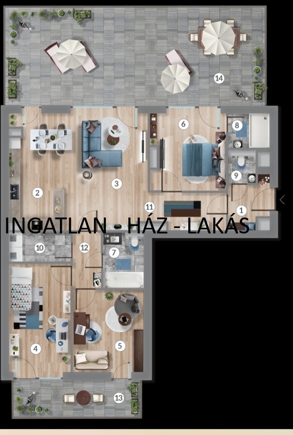 LAKÁS 91,89 NM + TERASZ 48,63 NM + ERKÉLY 8,29!