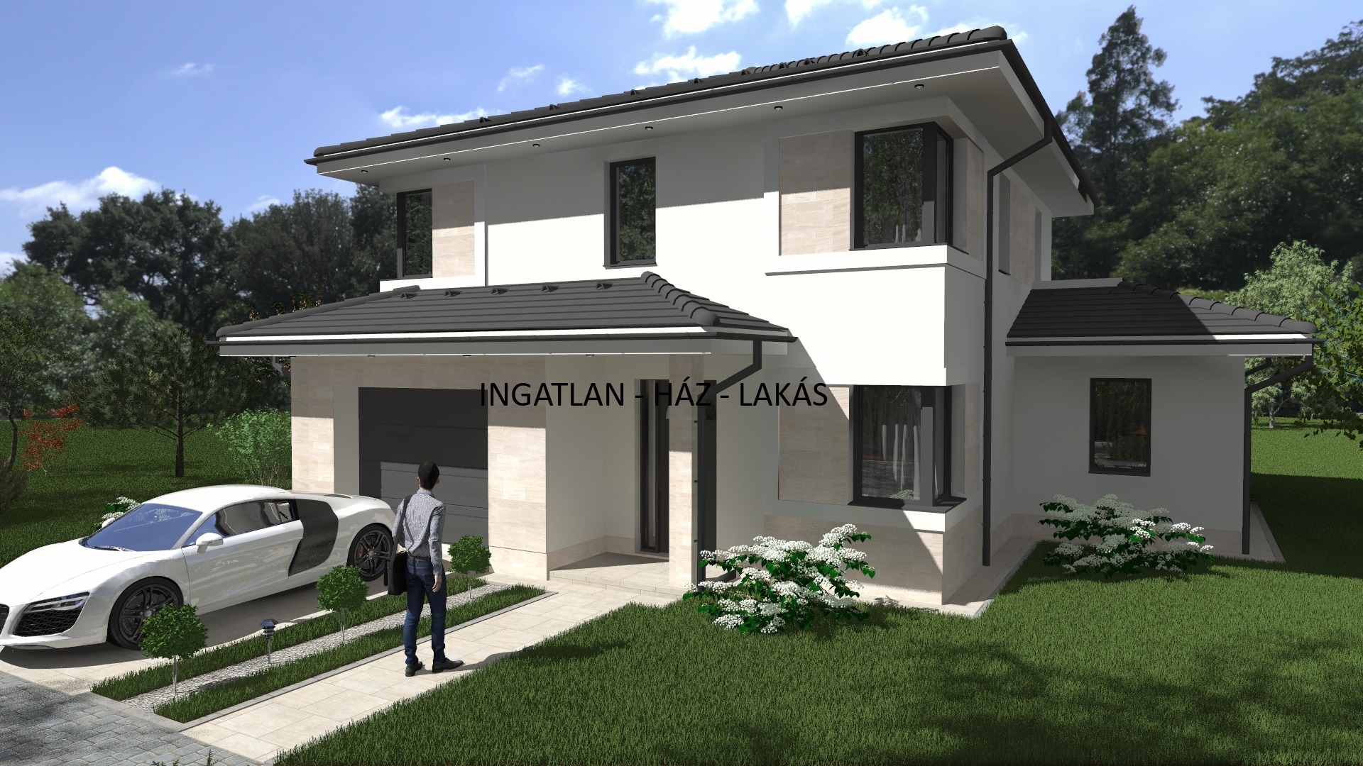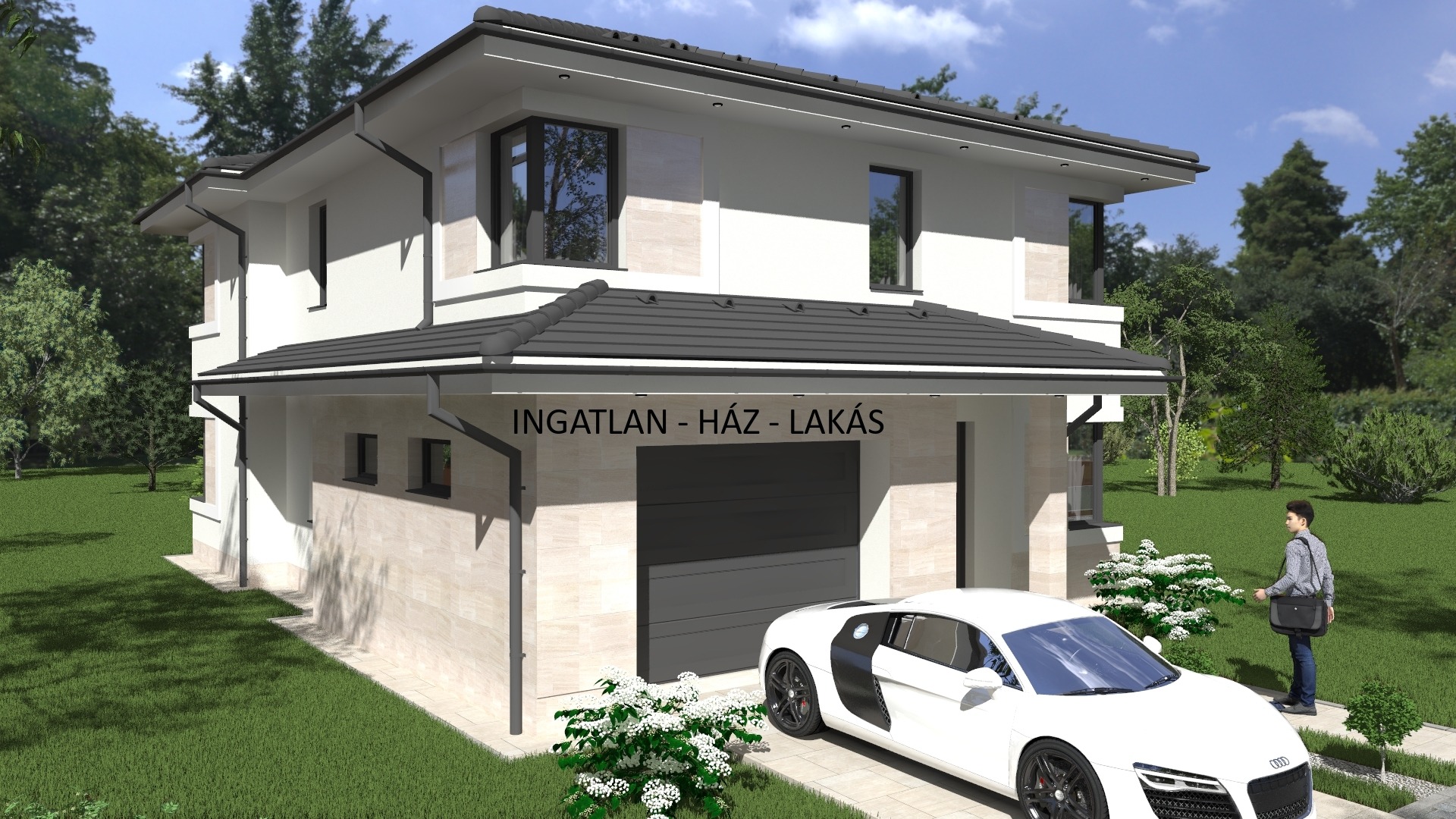 A házban 4 hálószoba, nagy nappali / amerikai étkezős konyha, 3 fürdőszoba, háztartási helyiség, tároló, kertkapcsolatos terasz valamint emeleti L alakú erkély lesz kialakítva 1 állásos garázzsal.