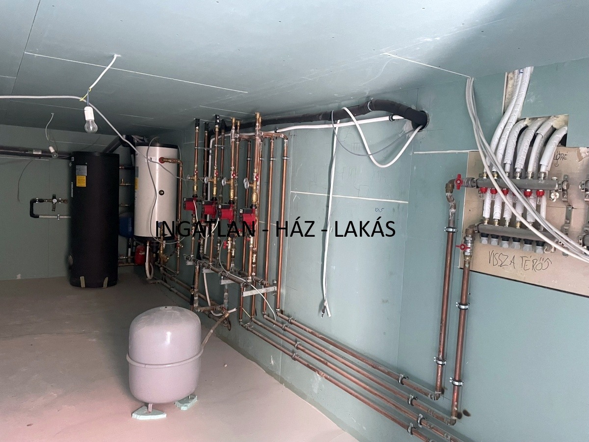- Fűtés és hűtés: Az ingatlanban hőszivattyús padlófűtés lesz kialakítva, ami a fűtést szolgálja. Valamint a használati melegvizet biztosítja tárolón keresztül.