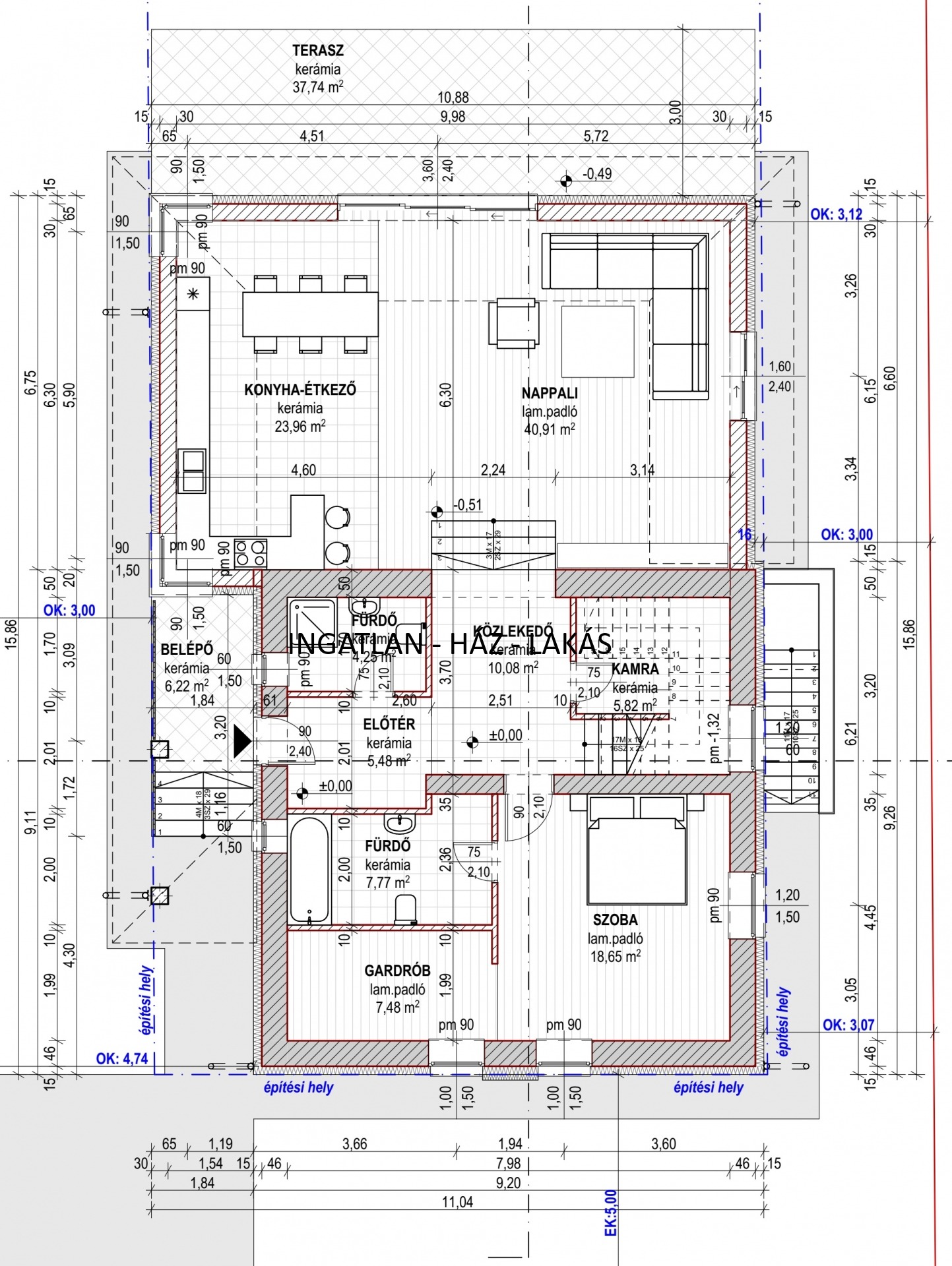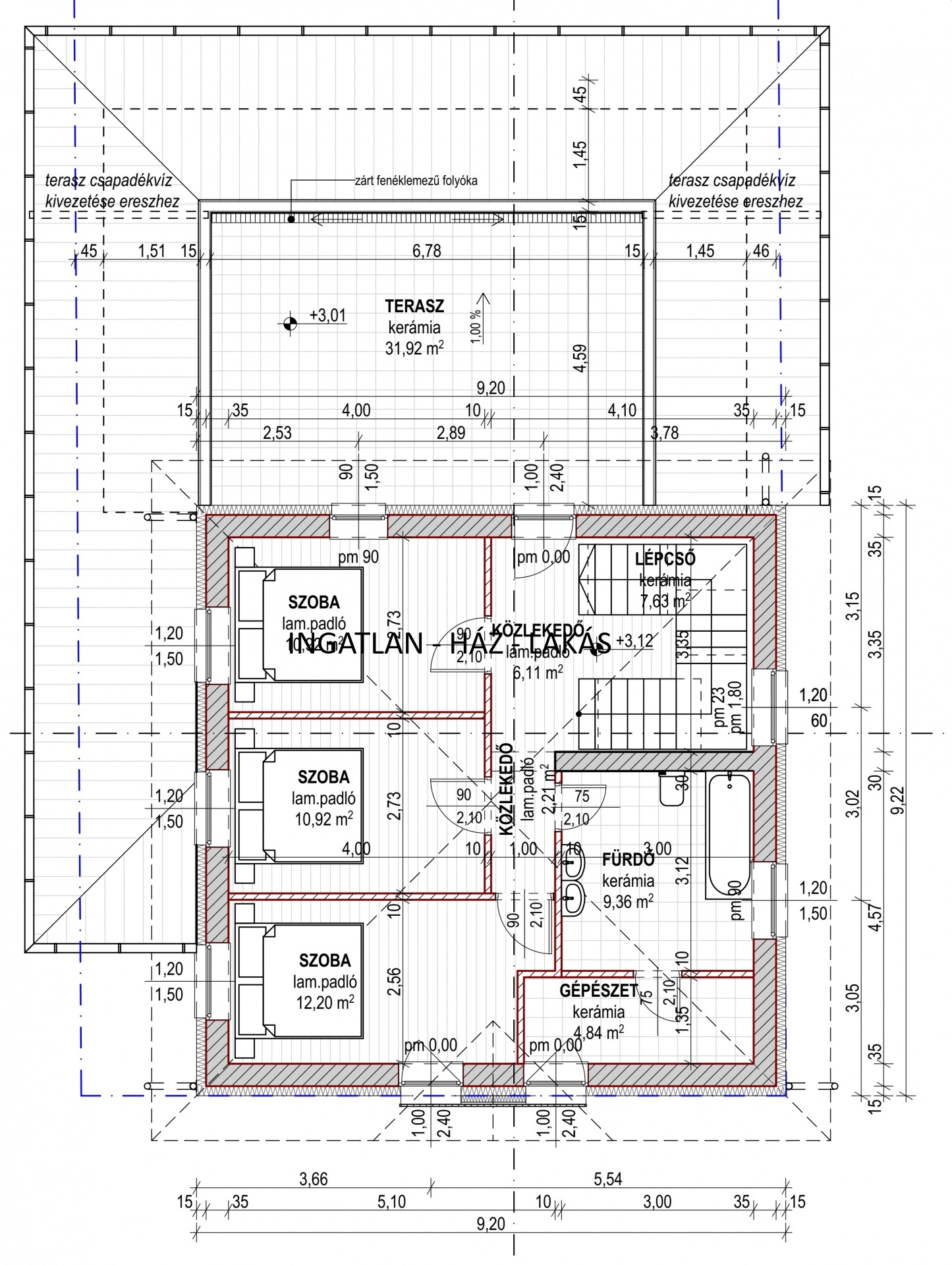 Emelet 62 nm + 32 nm terasz,