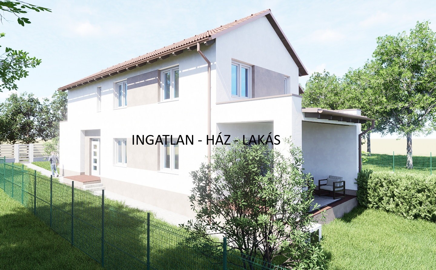nettó 142 nm-es (garázzsal együtt), nappali + 4 szobás, dupla komfortos, belső kétszintes, 15 nm-es fedett terasszal rendelkező ikerház fél eladó.