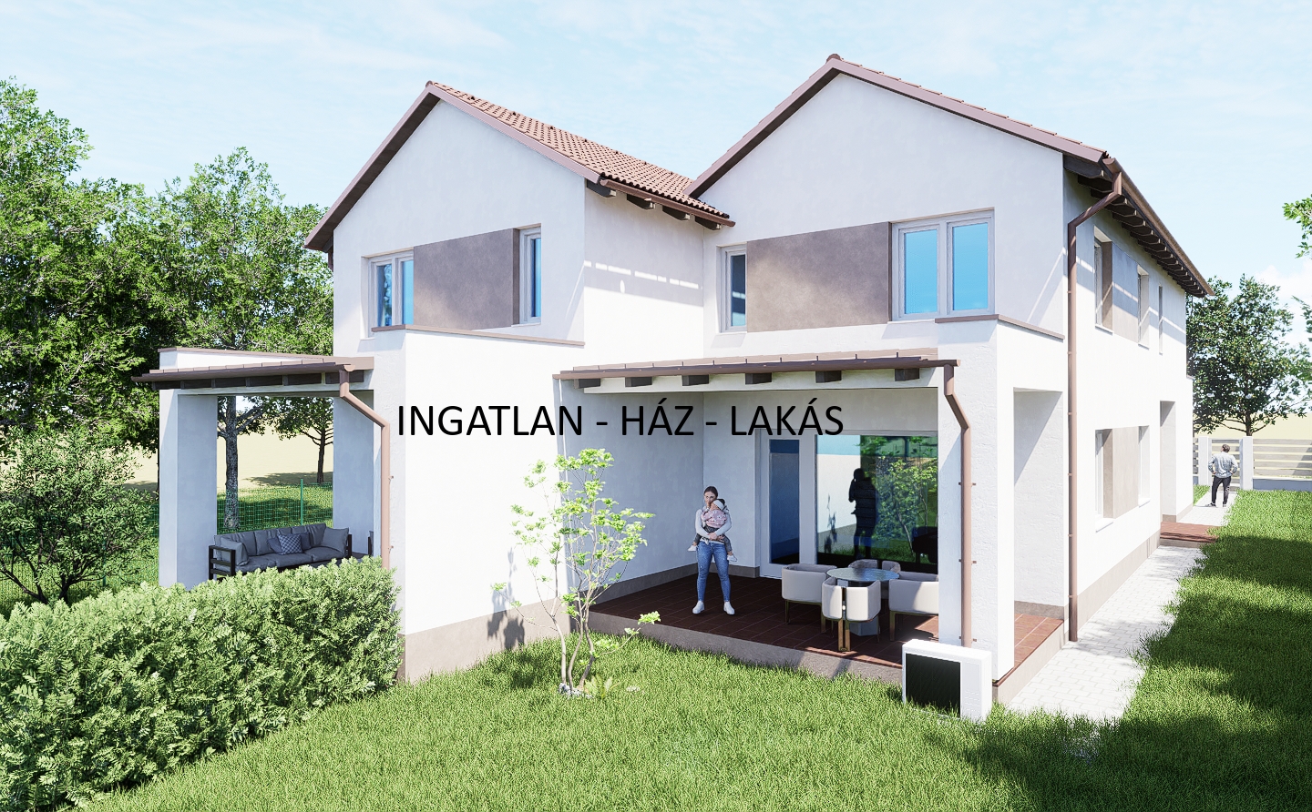 nettó 142 nm-es (garázzsal együtt), nappali + 4 szobás, dupla komfortos, belső kétszintes, 15 nm-es fedett terasszal rendelkező ikerház fél eladó.