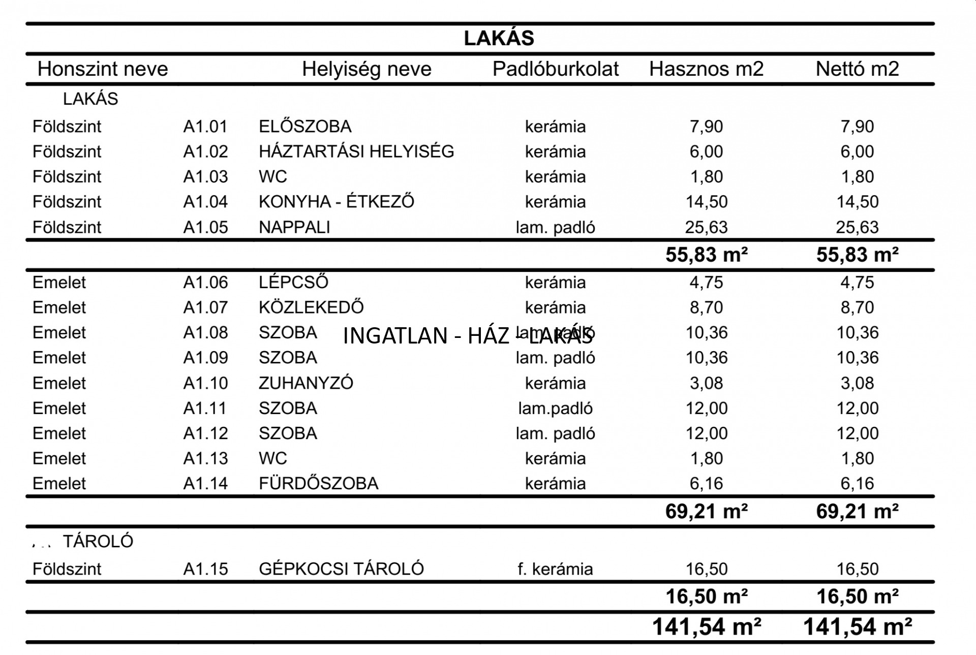Nettó alapterület: 142 m² (garázzsal)